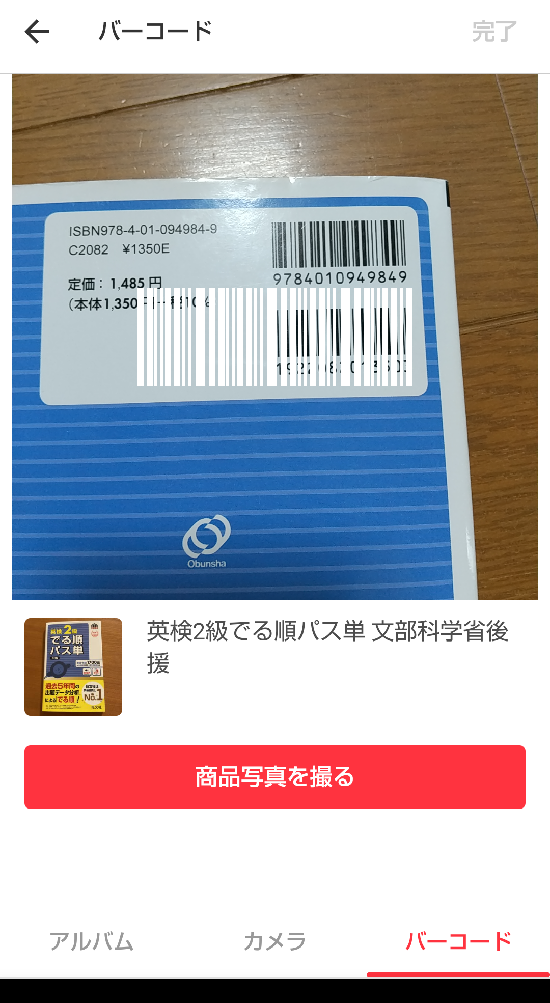 2:バーコードをスキャン→本のタイトルが下に表示されます。
