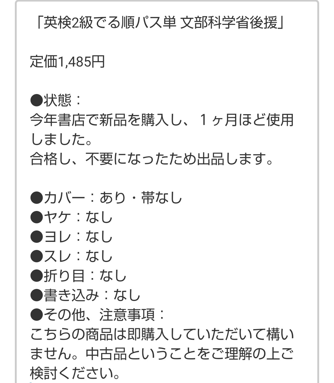 今回は子供が使用した英検の参考書を実際に出品したいと思います!
