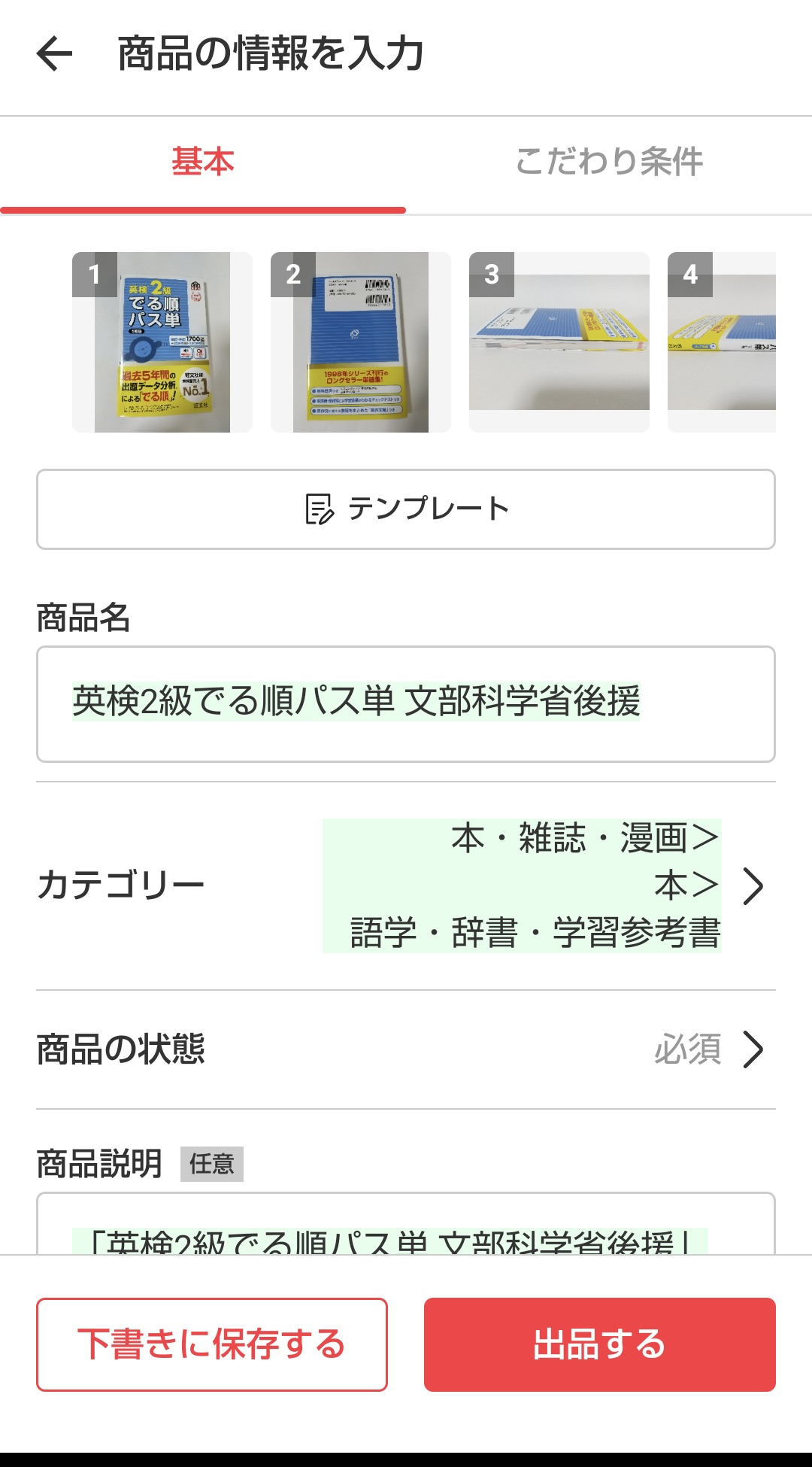 写真が追加され、自動で商品タイトルや説明文が入力されます!
